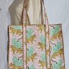 Lightweight, hand-block printed cotton quilted bags designed for effortless everyday elegance. Crafted in India and available in versatile sizes for every need. XL tote bag size 17.5 inch x 17.5 inch x 5inch