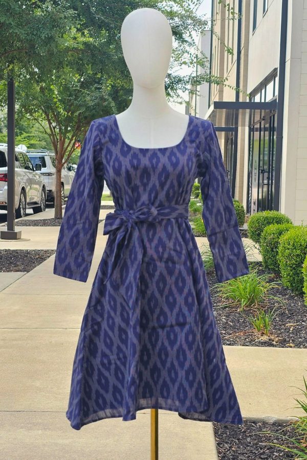 A 40-inch handwoven bow sash dress with long sleeves, concealed zipper, and an adjustable waist—crafted for comfort, layering, and timeless elegance.