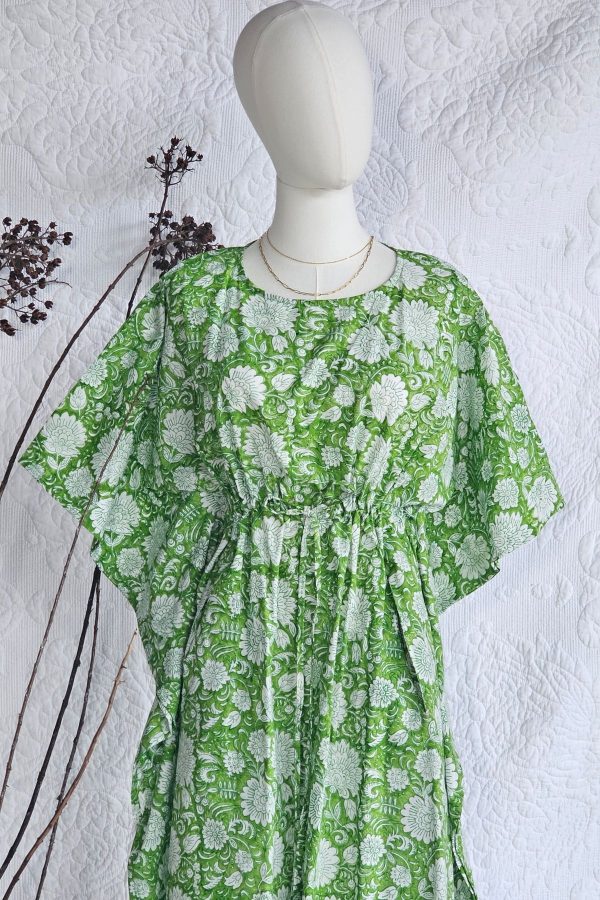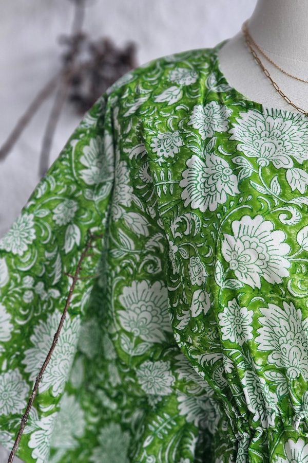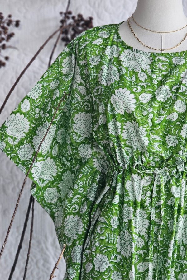 A free-flowing kaftan in 100% cotton, hand block printed and designed with an adjustable waist for effortless comfort and self-expression.