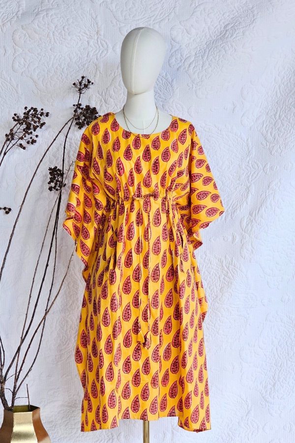 A free-flowing kaftan in 100% cotton, hand block printed and designed with an adjustable waist for effortless comfort and self-expression.